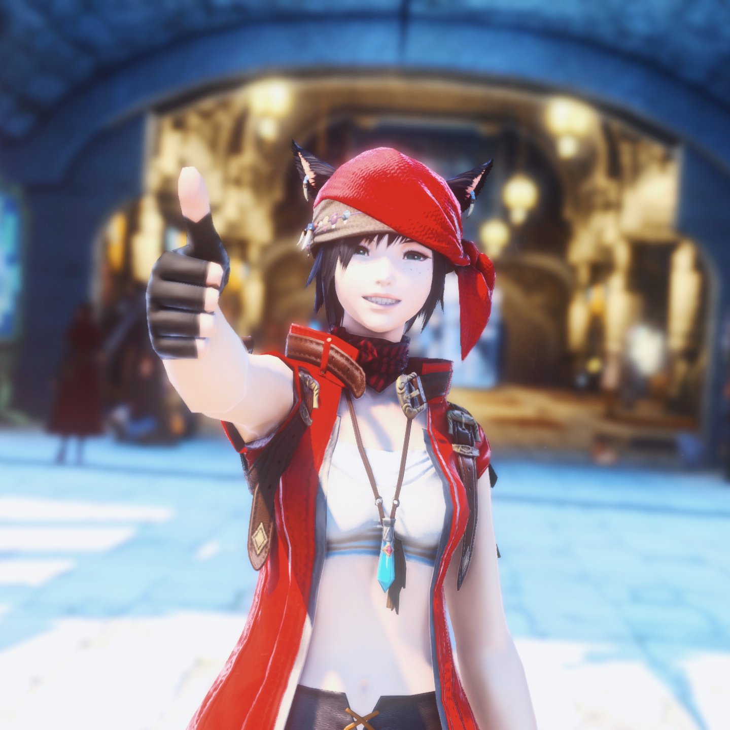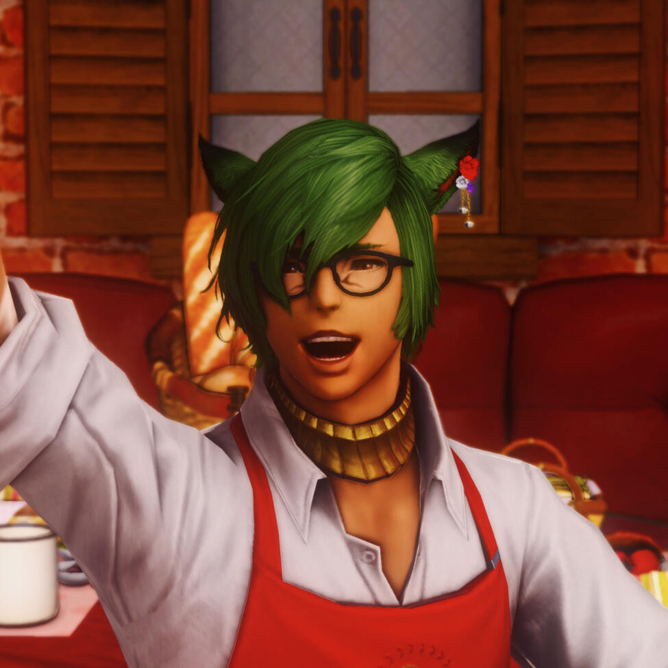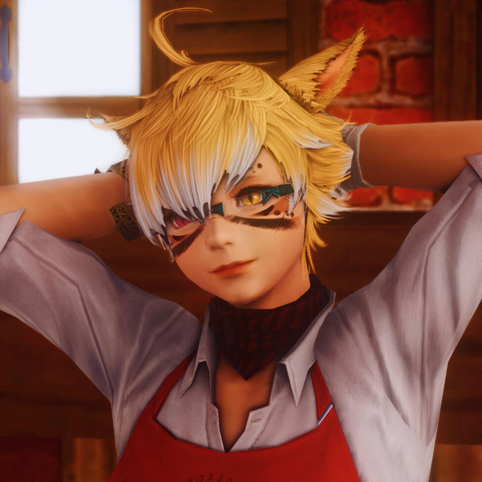 Okuyo Azhnik was the second of Puku Pizza's Pirates, hailing all the way from Ilsabard and Kugane. He wound up hanging up his apron and moving on, but we'll never forget the mirth be brought to our crew; his legacy lives on also in our delicious pineapple ponzecakes!