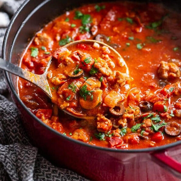 Proving that pizza really can be turned into anything, this hearty soup comes packed with sausage, peppers, onions, mushrooms, olives and pepperoni with a lil' marinara sauce for flavour.(( Represented in-game as HQ mesquite soup. ))