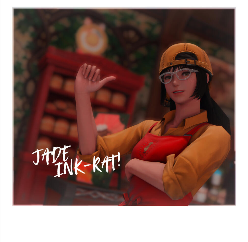 Look out everyone, it's JADE: the seventh Puku Pizza Pirate! This Alexandrian export may be like a fish out of water in Eorzea, but her passion for pizza is as true as her unique fashion sense, and when it comes to deliveries there is no one faster (aside from Ms. Takeuchi herself, that is).