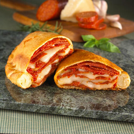 Meatier than the average calzone, think of this beefy pizza as the little brother to our famous Fat Cat Meat Lover's. Stuffed with two cuts of ham, four slices of pepperoni and a heaping of buffalo beef mixed with mozzarella—seasoned with black pepper, diced onions and salt—this is a calzone that means business. Comes complete with a cup of ruby tomato sauce and La Noscean lettuce.(( Represented in-game as HQ pizza. ))