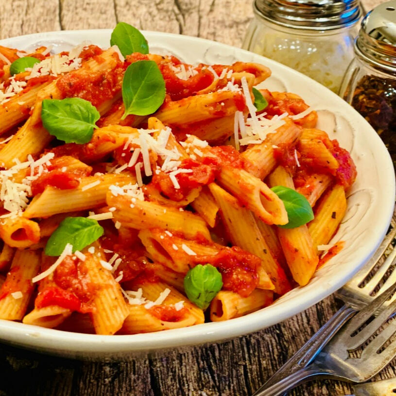 This bowl of La Noscean penne noodles bathed in marinara sauce is only made tastier with the addition of basil, garlic salt and olive oil.(( Represented in-game as chicken fettuccini. ))