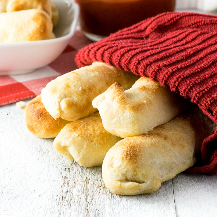 Appetizing breadsticks stuffed with gooey mozzarella for customers who think to themselves, "I want some more cheesy goodness in my life." Comes complete with a cup of delicious ruby tomato sauce!(( Represented in-game as HQ baguette. ))