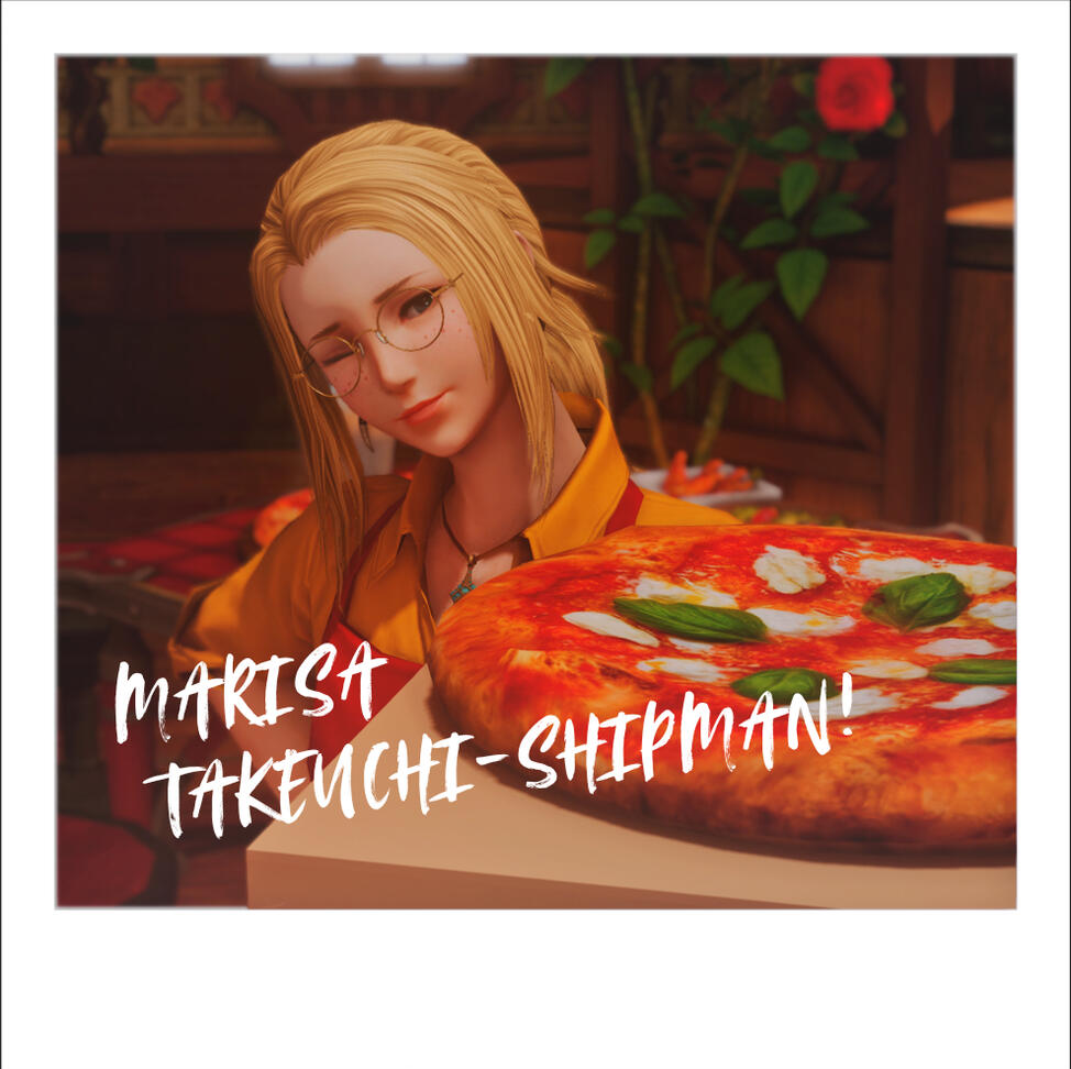 Named after a special friend of the pizza girl, this delectable pizza features the four crown jewels of diced pineapple, apkallu meat, cilantro, and onions sitting together on a throne of barbeque sauce. Give your taste buds the royal treatment.(( Represented in-game as HQ pizza. ))