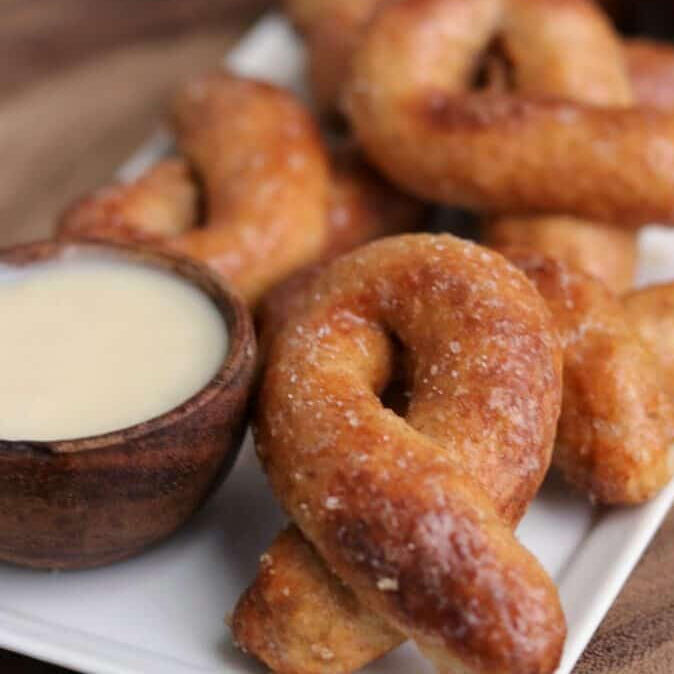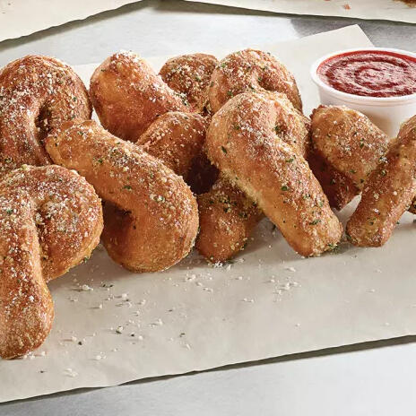 Delicious bread twists done with your preferred choice of either garlic or parmesan salt, complete with a cup of our ever-yummy tomato dipping sauce. Comes in packs of three.